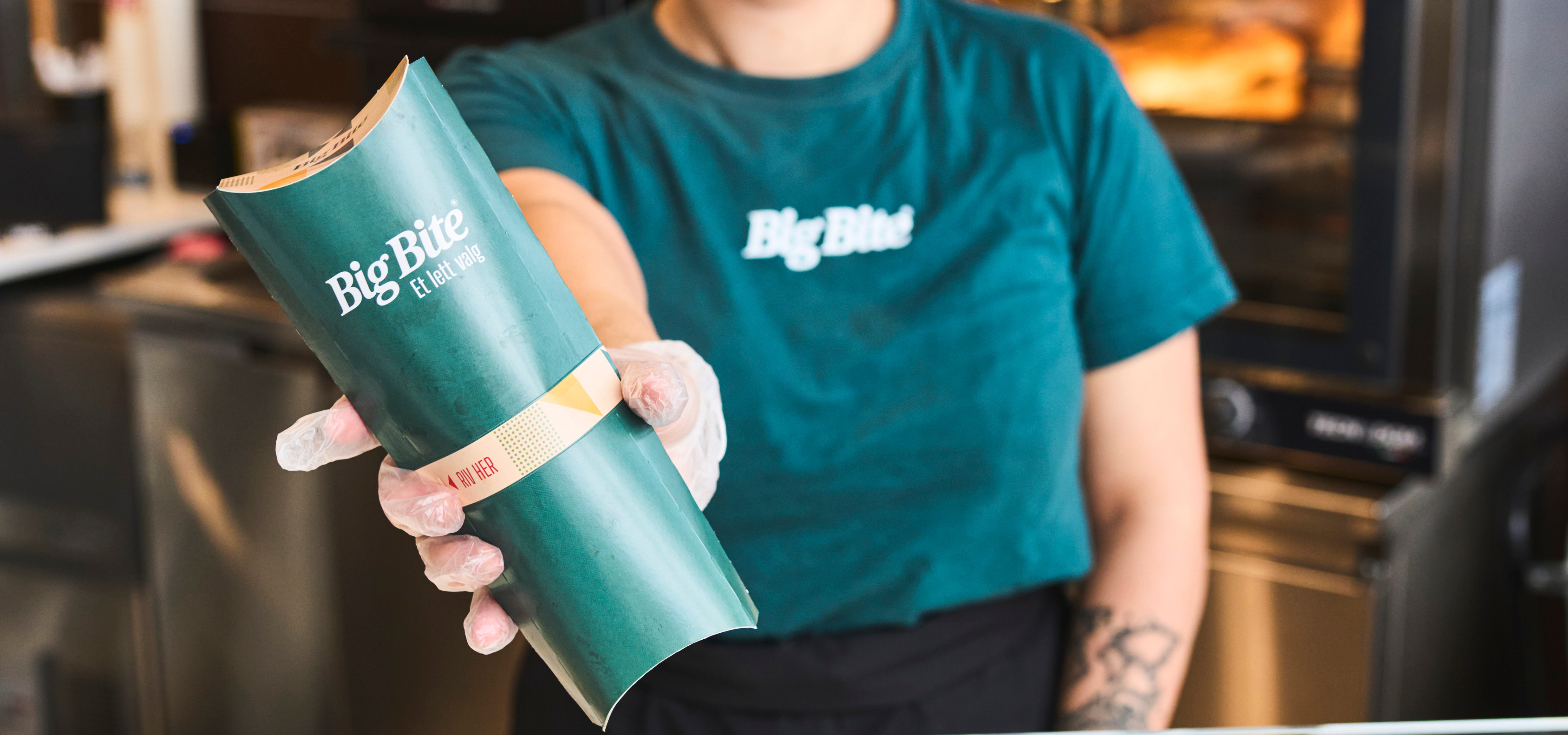 Fra byggeprosessen der bambus blir brukt på frontdisken, til emballasjen vi serverer maten i, viser Big Bite at vi tar ansvar for miljø- og forsyningskjeden. Vi bruker bærekraftige emballasjer laget av papp i stedet for plast. Dette bidrar til å beskytte miljøet ved å redusere mengden av plastavfall.